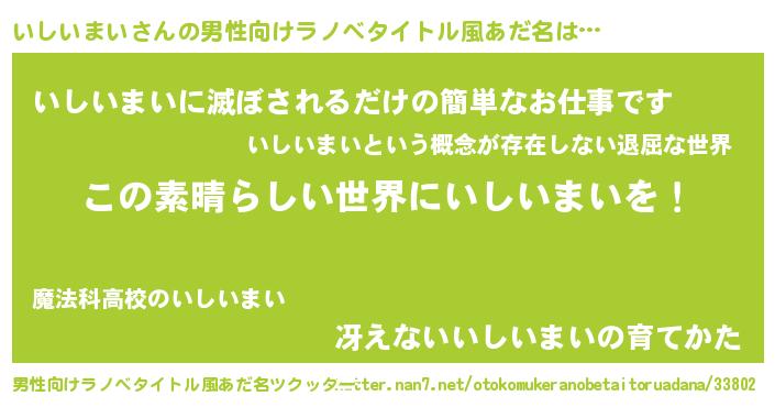 | 胡散臭い通販商品みたいなあだ名 | 『あなたにだけ特別に提供する100年もののヴィンテージワイン…その名も「いしいまい」』 |