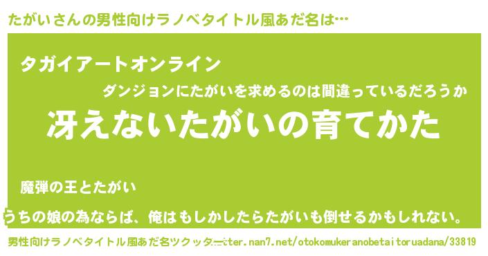 | 胡散臭い通販商品みたいなあだ名 | 『モテモテ間違いなし霊験あらたかなお札…その名も「たがい」』 |