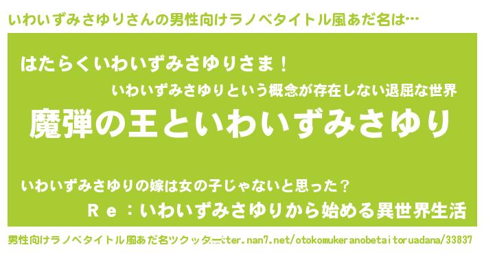 | 意味不明あだ名 | 『住所不定無職いわいずみさゆり(77歳)』 |