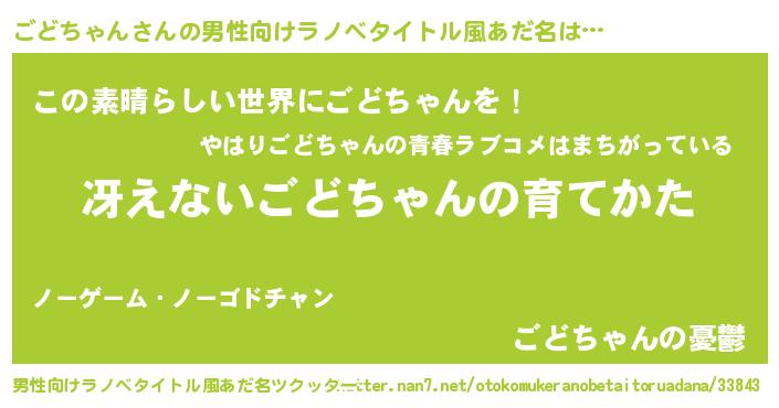 | 女子向けラノベタイトル風あだ名 | 『男装ごどちゃんの憂鬱な任務』 |