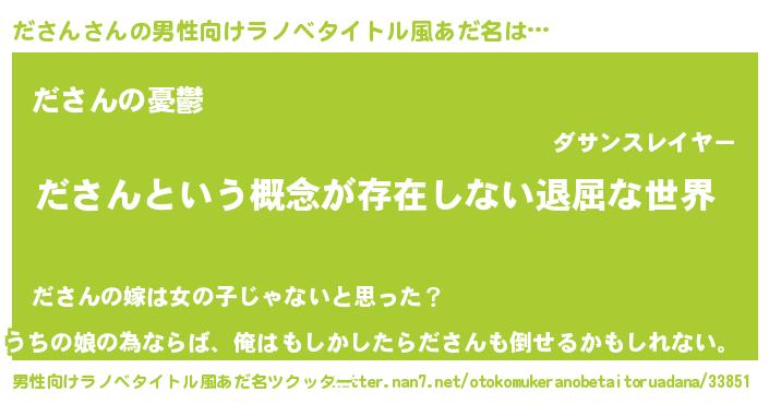 | ヒーロー風カッコイイあだ名 | 『ネオダサン』『スーパーダサン』 |