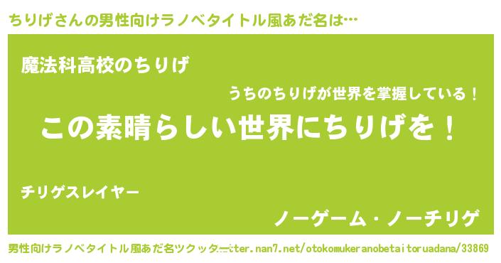 | 意味不明あだ名 | 『住所不定無職ちりげ(43歳)』『自称ちりげ』 |