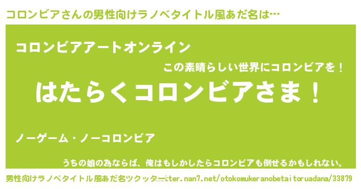 | 胡散臭い通販商品みたいなあだ名 | 『必ず成功するブレスレット…その名も「コロンビア」』 |