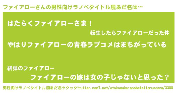 | 胡散臭い通販商品みたいなあだ名 | 『幸せが訪れる高級そうな皿…その名も「ファイアロー」』 |