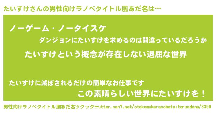 | 女子向けラノベタイトル風あだ名 | 『たいすけの契約王妃』 |