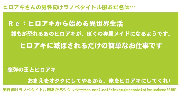 | 意味不明あだ名 | 『自称ヒロアキ』『永久保存ヒロアキ』 |