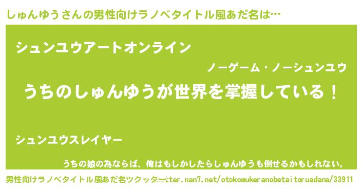 | 胡散臭い通販商品みたいなあだ名 | 『億万長者になれるブレスレット…その名も「しゅんゆう」』 |