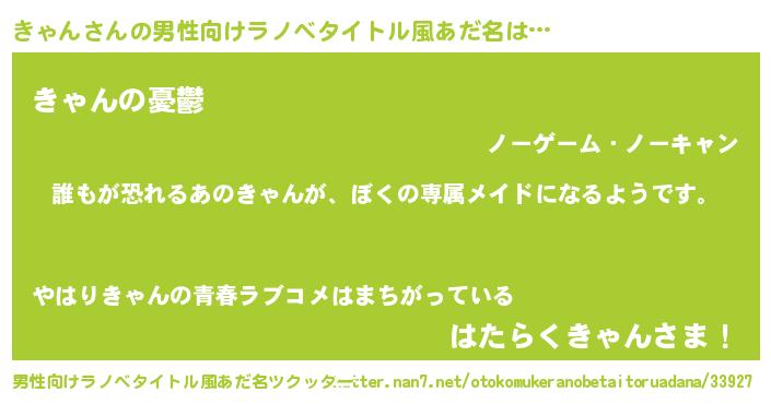 | 女子向けラノベタイトル風あだ名 | 『異世界でカフェきゃんを開店しました。』 |