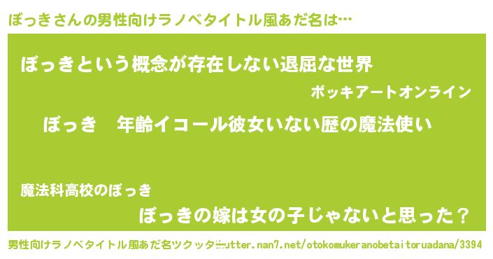 | ヘコむあだ名 | 『ぼっき(遠い目)』『ぼっっちょ』 |