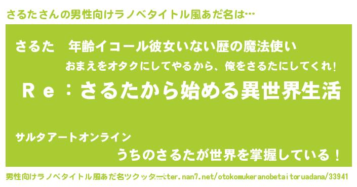 | 女子向けラノベタイトル風あだ名 | 『闇のさるた』『さるたの玉の輿計画!』 |