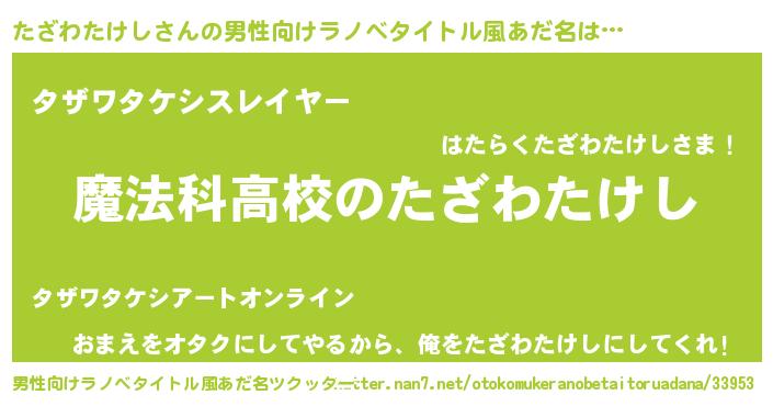 | 女子向けラノベタイトル風あだ名 | 『たざわたけしなんてお断りですっ。』 |