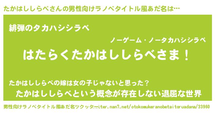| 意味不明あだ名 | 『永久保存たかはししらべ』 |