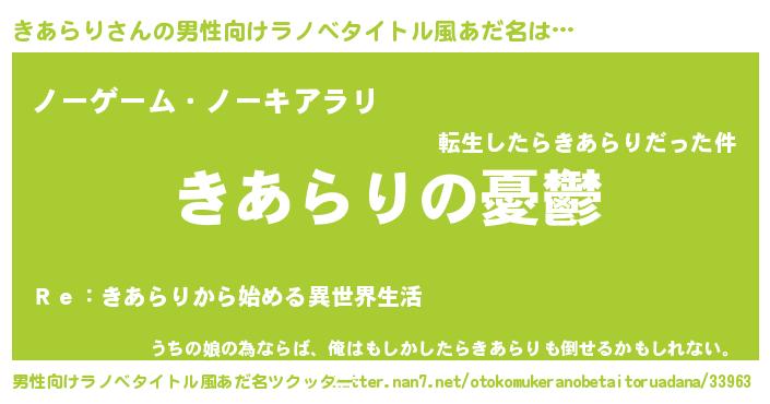| 胡散臭い通販商品みたいなあだ名 | 『必ず成功する霊験あらたかなお札…その名も「きあらり」』 |
