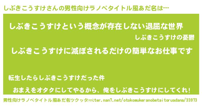 | ヘコむあだ名 | 『しぶきこうすけ(遠い目)』『しぶふぇ~』 |