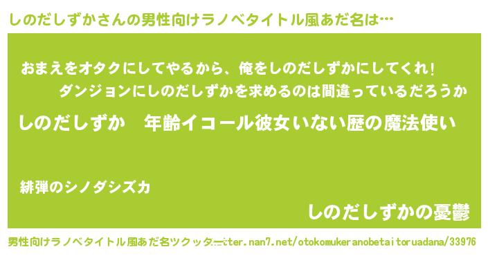 | 女子向けラノベタイトル風あだ名 | 『しのだしずかの玉の輿計画!』 |
