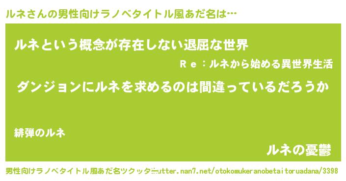 | 女子向けラノベタイトル風あだ名 | 『ルネは平凡を望む』『ルネの契約王妃』 |