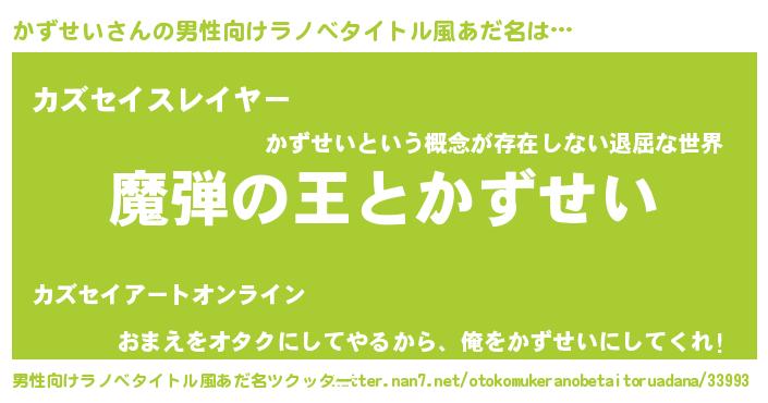 | 女子向けラノベタイトル風あだ名 | 『乙女ゲームの破滅フラグしかない悪役かずせいに転生してしまった…』 |