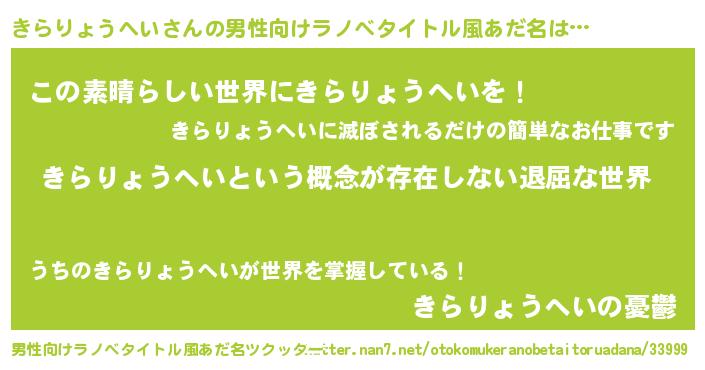 | 意味不明あだ名 | 『永久保存きらりょうへい』 |