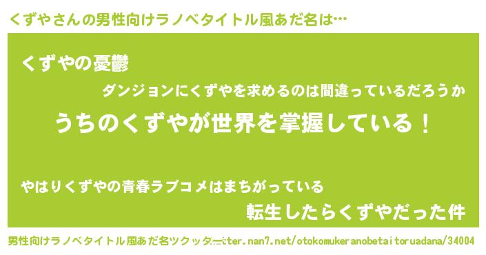 | 胡散臭い通販商品みたいなあだ名 | 『億万長者になれるブレスレット…その名も「くずや」』 |