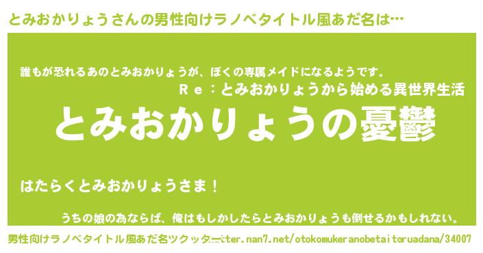 とみおかりょうさんの男性向けラノベタイトル風あだ名をツクッター!