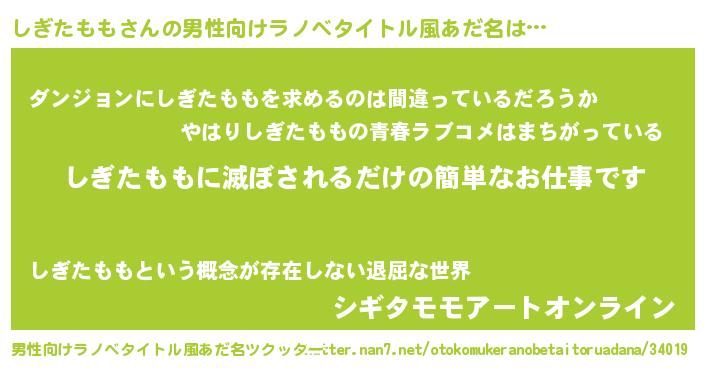| 意味不明あだ名 | 『とにかく怪しいしぎたもも』 |