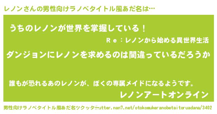 | ヘコむあだ名 | 『レノっちょ』『レノにゅー』 |