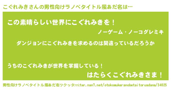 | 女子向けラノベタイトル風あだ名 | 『こぐれみきの卵を拾いまして』 |