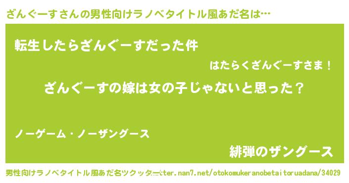 | 女子向けラノベタイトル風あだ名 | 『ざんぐーす様がみてる』 |