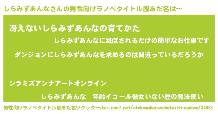 | 胡散臭い通販商品みたいなあだ名 | 『信頼と実績のサプリメント…その名も「しらみずあんな」』 |