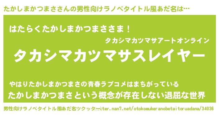 | 意味不明あだ名 | 『めかぶ科たかしまかつまさ属』 |