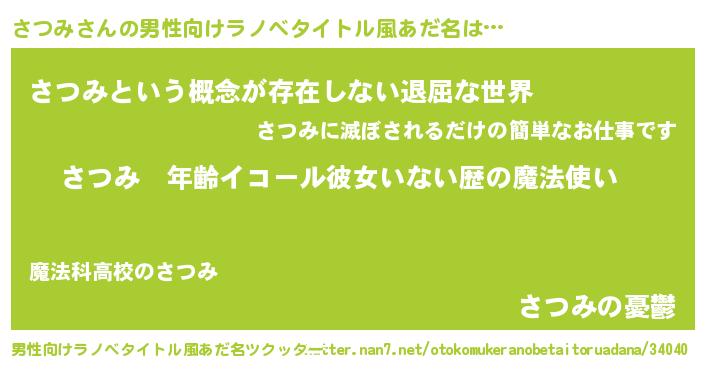 | 女子向けラノベタイトル風あだ名 | 『さつみの玉の輿計画!』 |