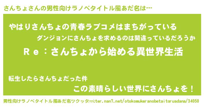 | 女子向けラノベタイトル風あだ名 | 『さんちょストレイドッグス』 |