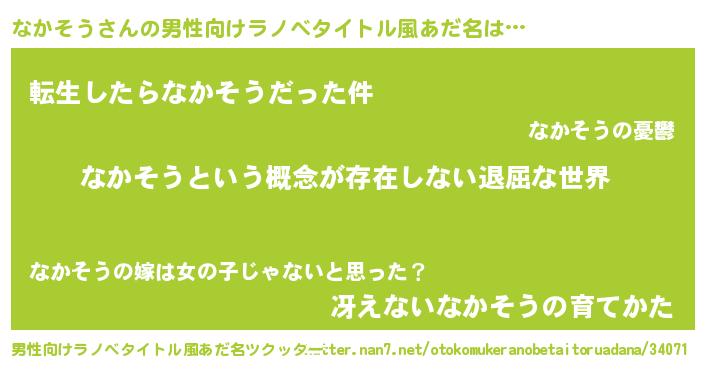 | 意味不明あだ名 | 『永久保存なかそう』『ペロリンなかそう』 |