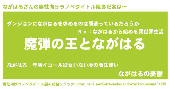 | 女子向けラノベタイトル風あだ名 | 『乙女ゲームの破滅フラグしかない悪役ながはるに転生してしまった…』 |
