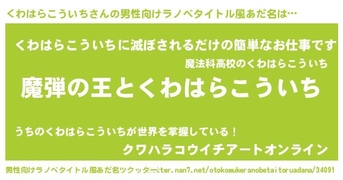 | 女子向けラノベタイトル風あだ名 | 『くわはらこういちが死なない童話 林檎のくわはらこういちの診療簿』 |