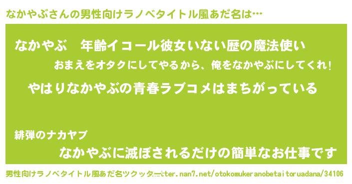 | 女子向けラノベタイトル風あだ名 | 『なかやぶ伯爵の花嫁』 |