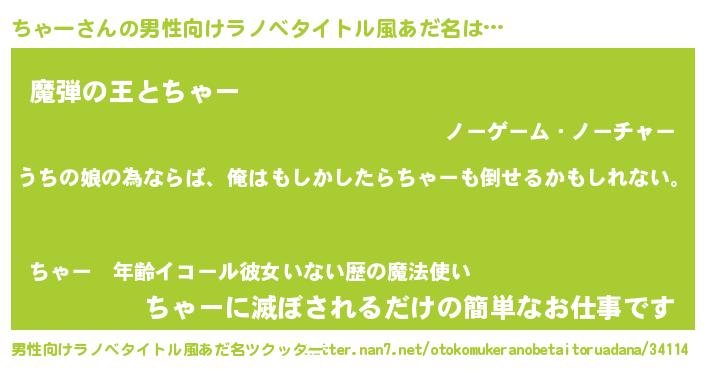 ちゃーさんの男性向けラノベタイトル風あだ名をツクッター!