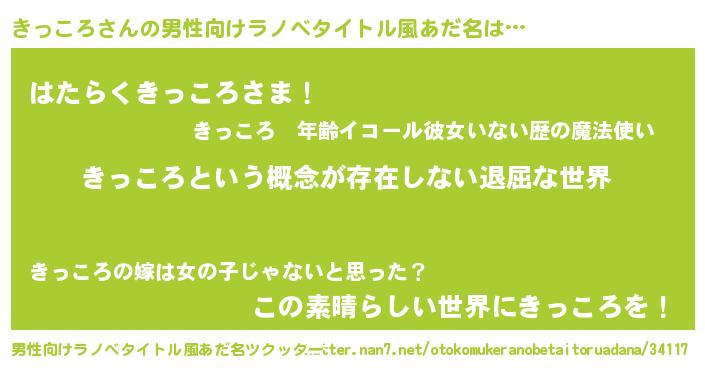| 女子向けラノベタイトル風あだ名 | 『異世界で失敗しない100のきっころ』 |