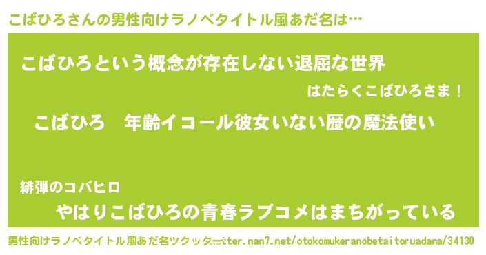 | 女子向けラノベタイトル風あだ名 | 『こばひろの玉の輿計画!』 |