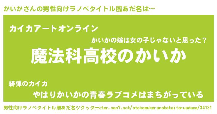 | ヘコむあだ名 | 『かいにー』『豆乳』『かい太郎』 |