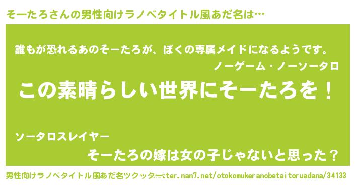 | ヘコむあだ名 | 『そーたろ(笑)』『そーを』 |
