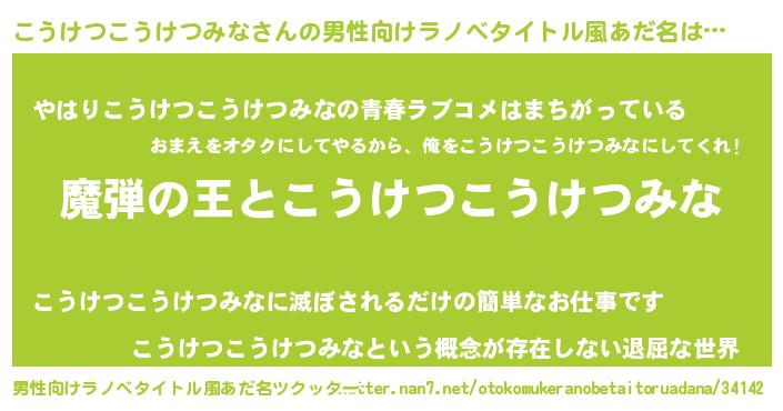 | 意味不明あだ名 | 『住所不定無職こうけつこうけつみな(9歳)』 |