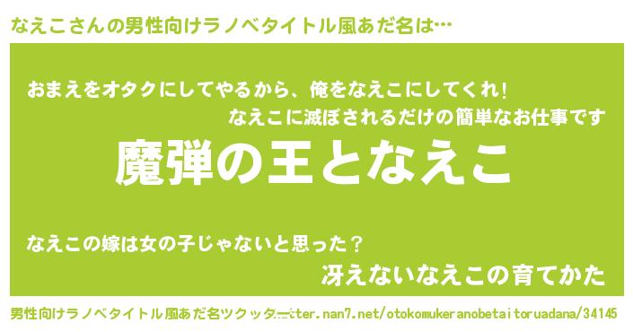 | 女子向けラノベタイトル風あだ名 | 『乙女ゲームの破滅フラグしかない悪役なえこに転生してしまった…』 |
