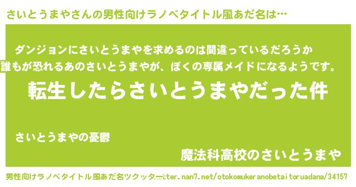 | 女子向けラノベタイトル風あだ名 | 『さいとうまやの玉の輿計画!』 |