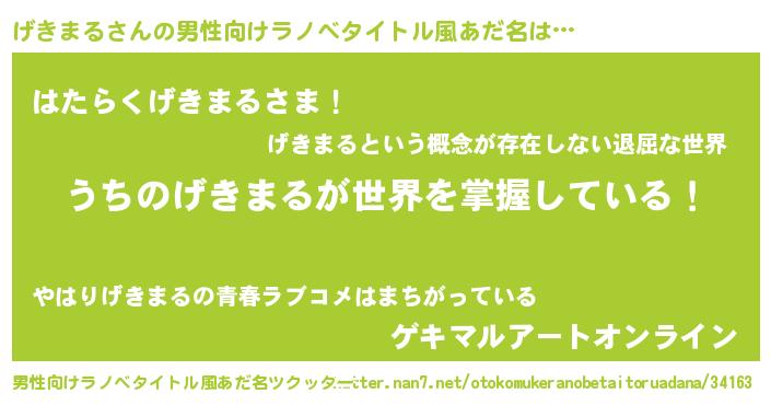 | 欧米人風あだ名 | 『げきまる・ステッグマイヤー』 |