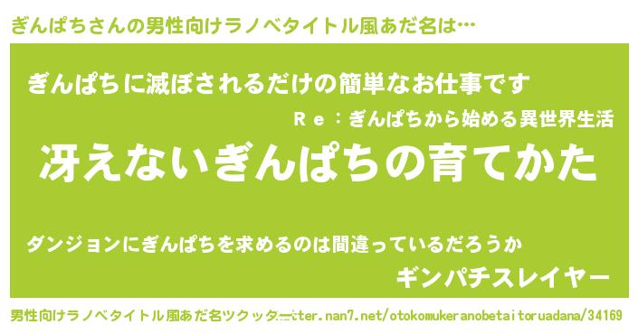 | 意味不明あだ名 | 『なめこ科ぎんぱち属』『自称ぎんぱち』 |