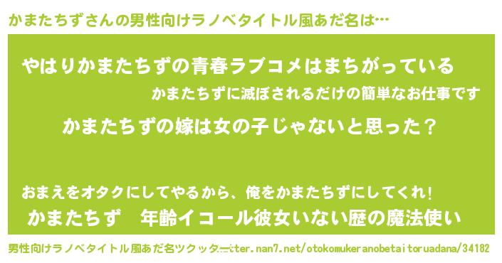 | ヘコむあだ名 | 『かまっちょ』『豆乳』『かまにゅー』 |