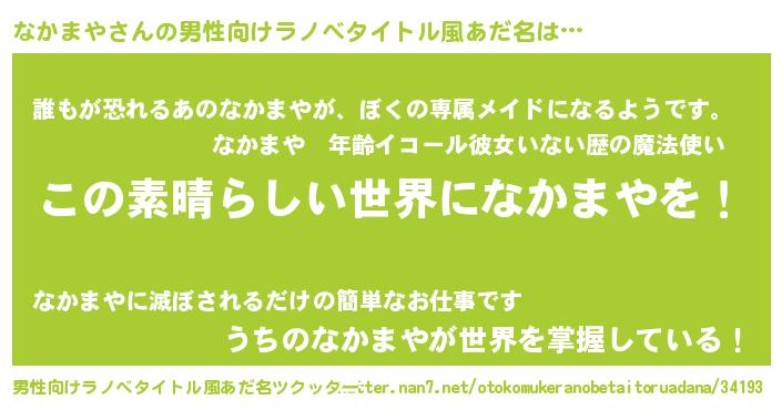| 女子向けラノベタイトル風あだ名 | 『乙女ゲームの破滅フラグしかない悪役なかまやに転生してしまった…』 |