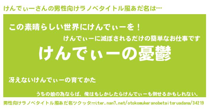 | 女子向けラノベタイトル風あだ名 | 『けんでぃー姫と円卓の騎士』 |