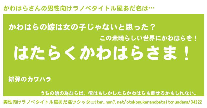 | 意味不明あだ名 | 『とにかく怪しいかわはら』 |